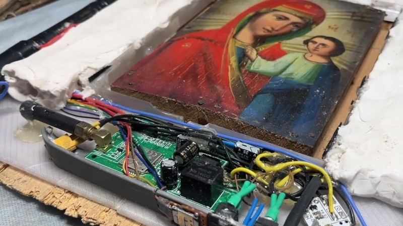 Православная икона с взрывным устройством, изъятая сотрудниками ФСБ РФ у гражданки России в ходе оперативно-розыскных мероприятийДзен