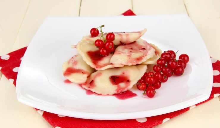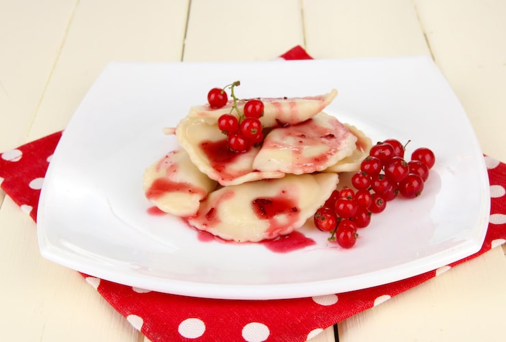 После того, как вареники всплывут, дайте им прокипеть еще 1-2 минуты, затем аккуратно выньте их шумовкой и положите на тарелку, застеленную бумажным полотенцем, чтобы удалить лишнюю жидкость.