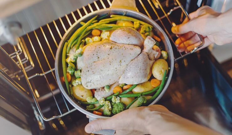 Разогрейте печь до правильной температуры — обычно это 180-200 градусов Цельсия. Это поможет мясу прожариться и не пересушить.