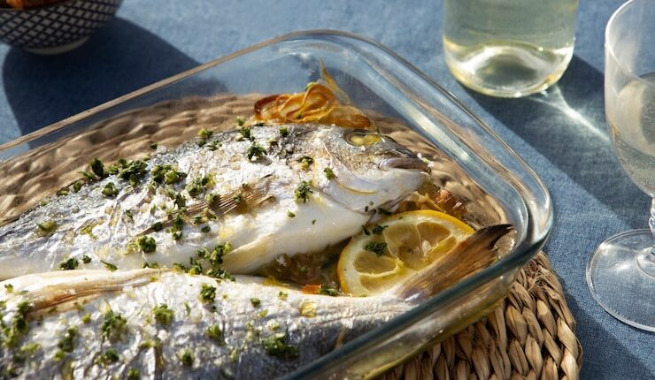 Затем поставьте противень в предварительно разогретую духовку и запекайте рыбу при температуре 200 градусов по Цельсию в течение 15-20 минут, или до тех пор, пока она не станет мягкой и сочной.