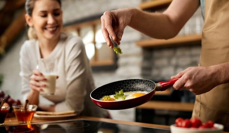 Первый шаг к идеальному яичному блюду — правильное сочетание ингредиентов. Для четырех порций возьмите шесть яиц, 120 мл молока и щепотку соли. Молоко можно заменить йогуртом или сливками для более нежного вкуса.