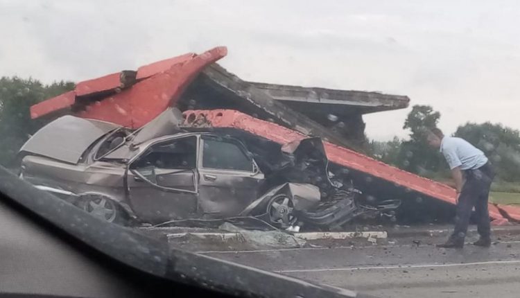 На кадрах, сделанных очевидцами, можно заметить, как бетонная остановка буквально сложилась пополам, придавив машину. По предварительным данным, автомобиль мчался по дороге на большой скорости, во время движения, по словам очевидцев, у него лопнуло колесо.