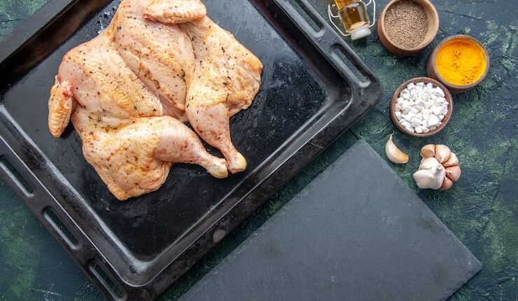 Начать жарку курицы целиком на сковороде следует с правильного выбора птицы. Обратите внимание на тушку, она должна быть свежей и не иметь посторонних запахов. Идеальный вес курицы для жарки — около 1,5 кг. Перед жаркой обязательно промойте курицу под проточной водой и обсушите ее полотенцем.
