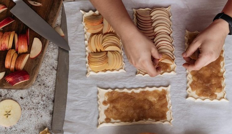 Подготовка фруктовой смеси и выпекание изделий