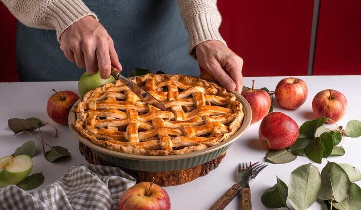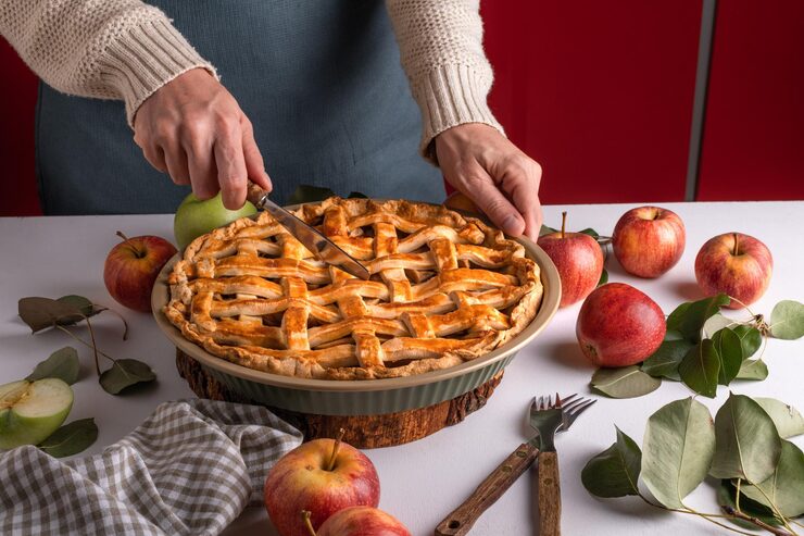 Для начинки вам понадобятся яблоки. Выберите сладкие сорта, такие как Golden Delicious или Gala. Нарежьте яблоки тонкими ломтиками, не удаляя кожуру. Это добавит пирогу текстуру и аромат. Добавьте сахар и лимонный сок к яблокам и дайте им постоять, пока тесто не разморозится.