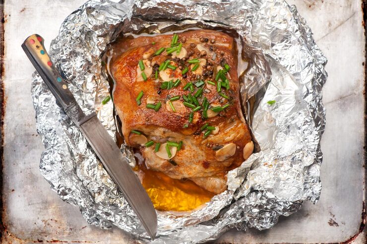 Заверните мясо в фольгу, оставив небольшое отверстие для выхода пара. Это поможет сохранить мясо сочным внутри и предотвратит пересушивание.