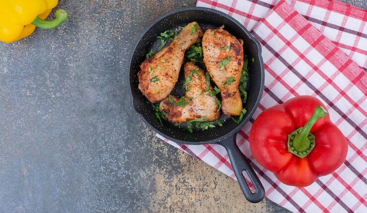 Перед жаркой убедитесь, что куриные бедра полностью разморожены. Если они еще заморожены, оберните их пищевой пленкой и оставьте на ночь в холодильнике. Размораживание при комнатной температуре может привести к росту бактерий.